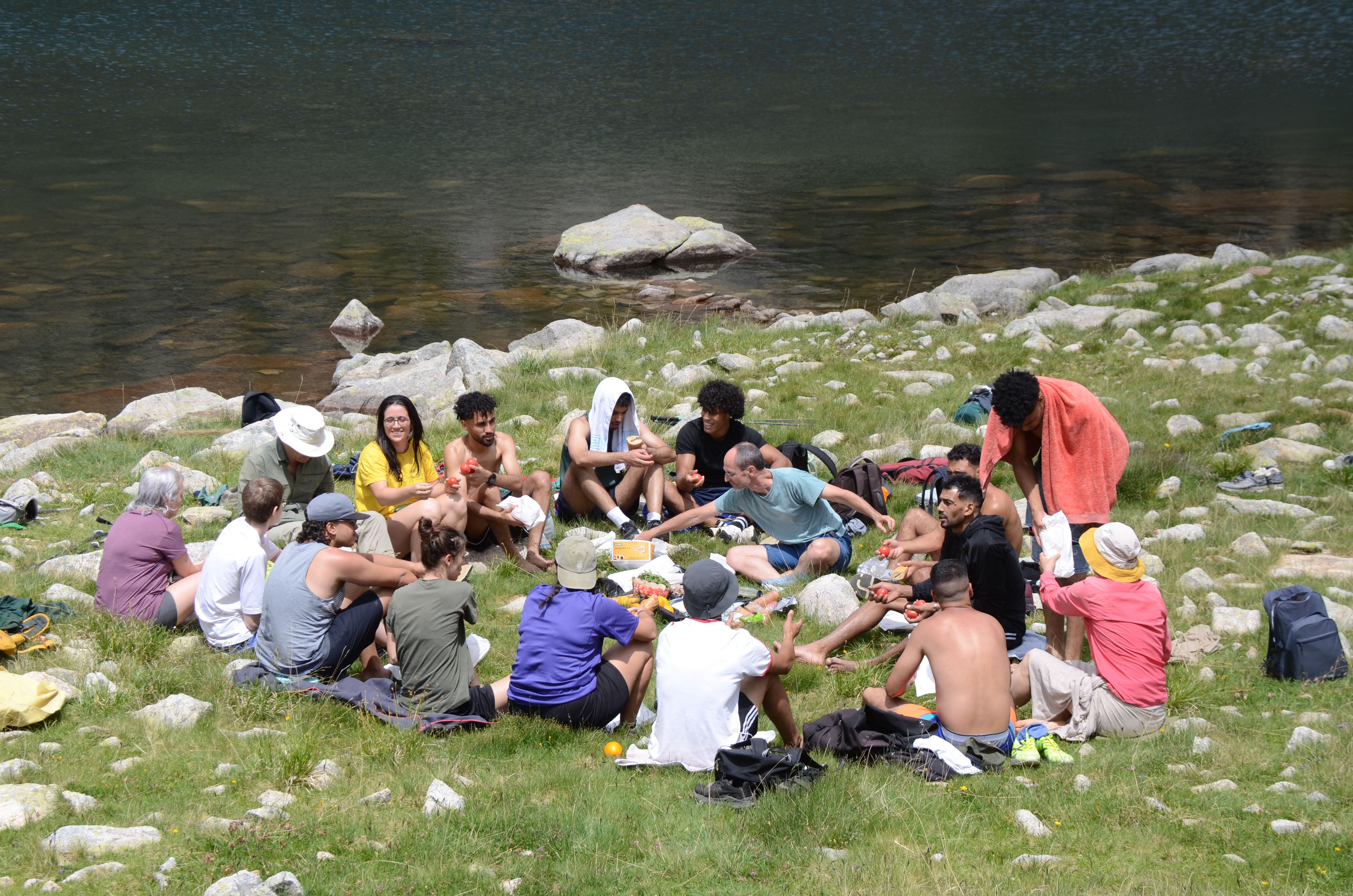 Han sido días para conocerse y hacer rescoldo, para hacer montaña, compartir el cotidiano y disfrutar del entorno y la compañía. Durante las mañanas, las excursiones han posibilitado conocer lugares preciosos: la cumbre del Mulleres, el Lago Redon, los Besiberris, ríos y embalses diversos... Y por las tardes, el espacio distendido para compartir ha permitido que se generaran debates interculturales e interreligiosos muy interesantes. Hemos hecho juegos improvisados, hemos conocido Vielha y Arties y hemos cocinado plegadas, descansado y compartido.