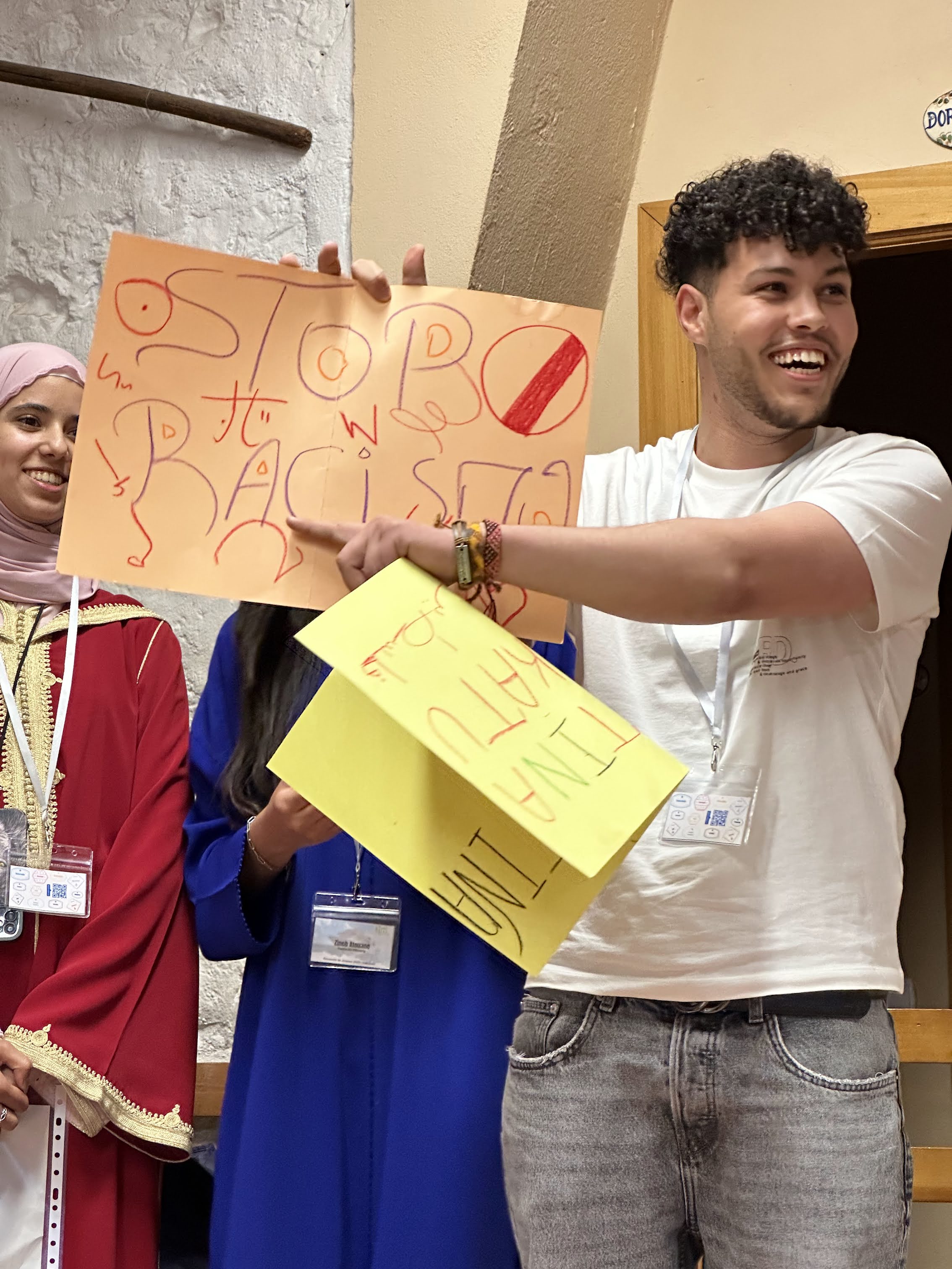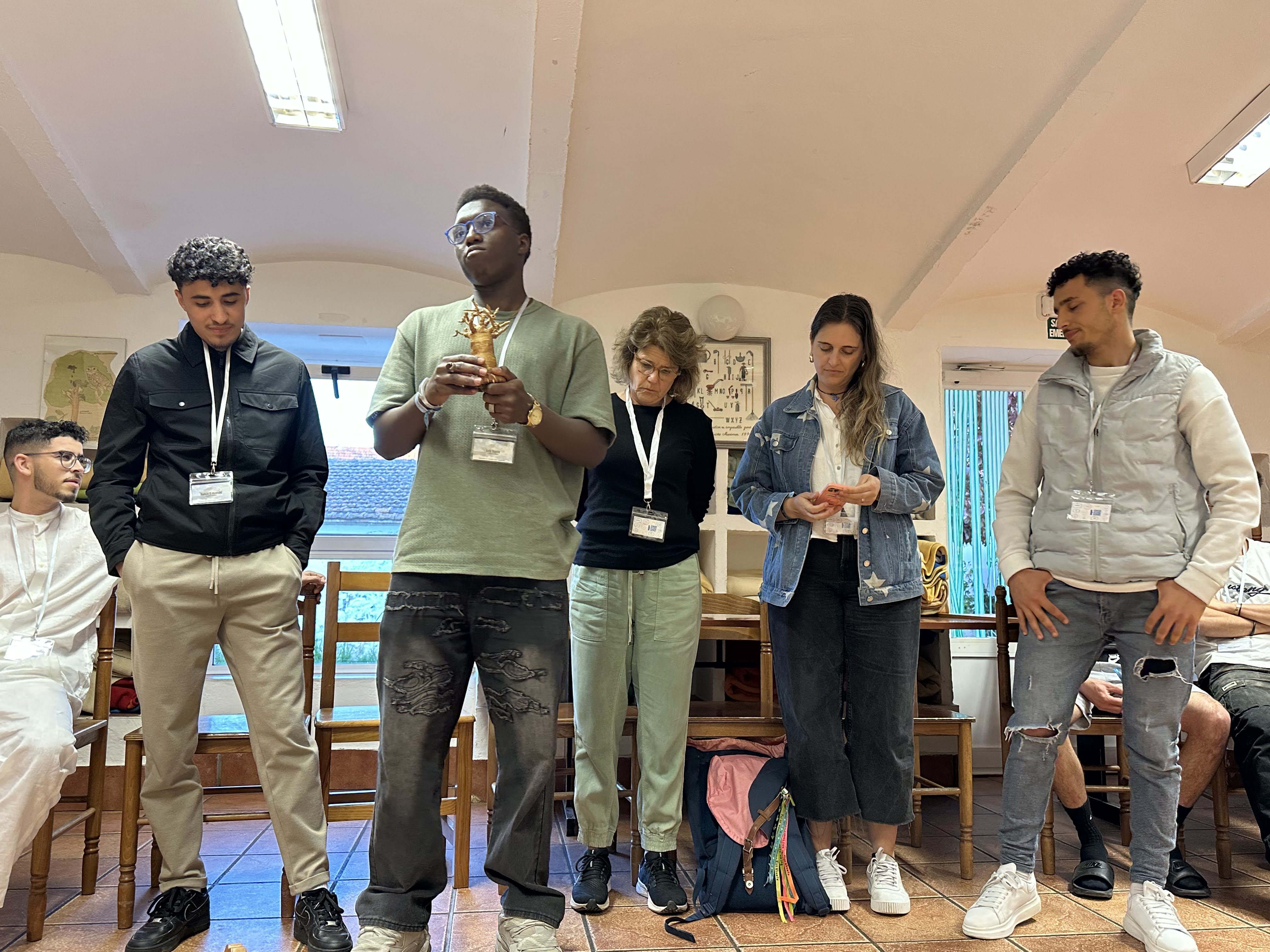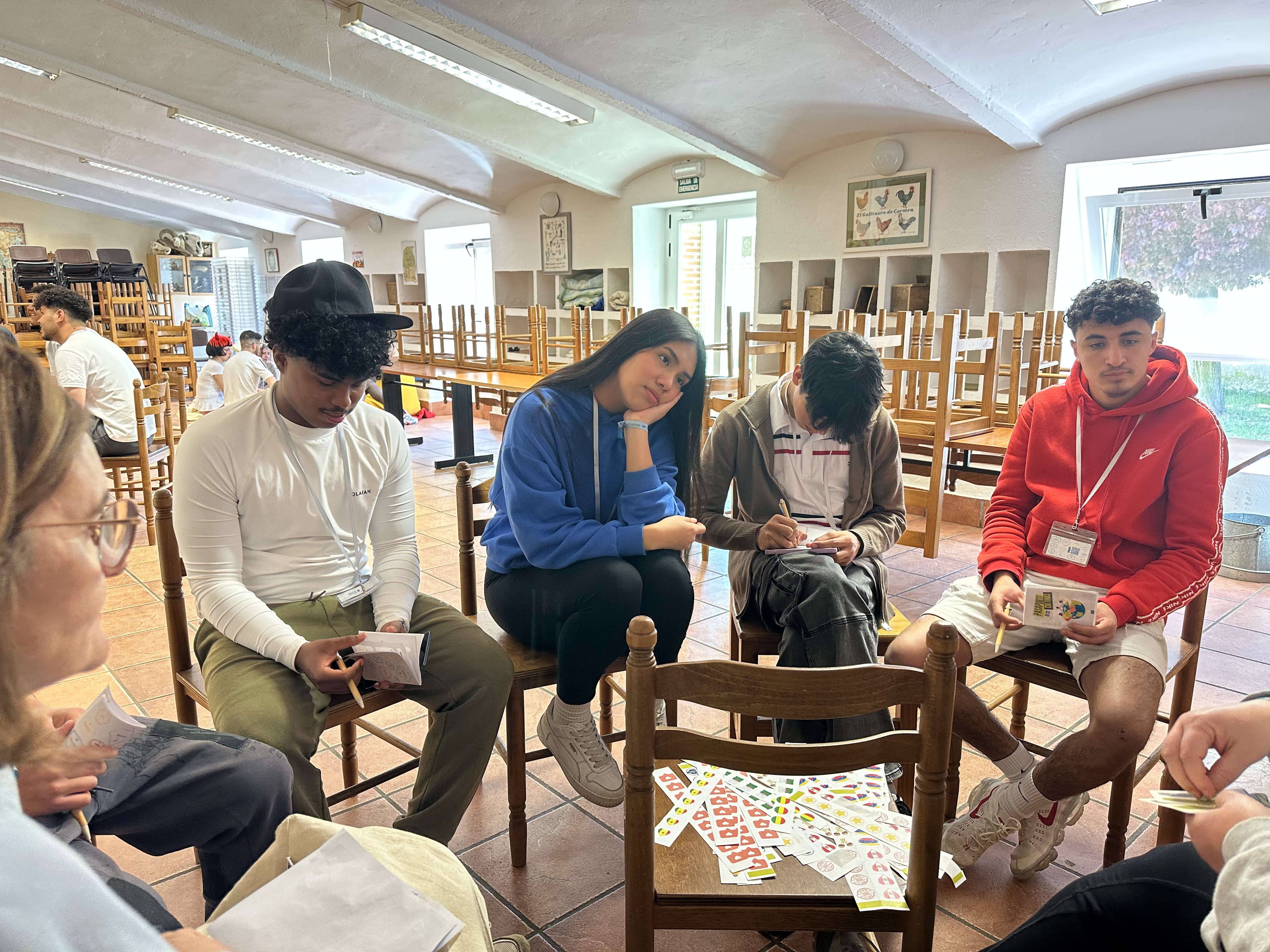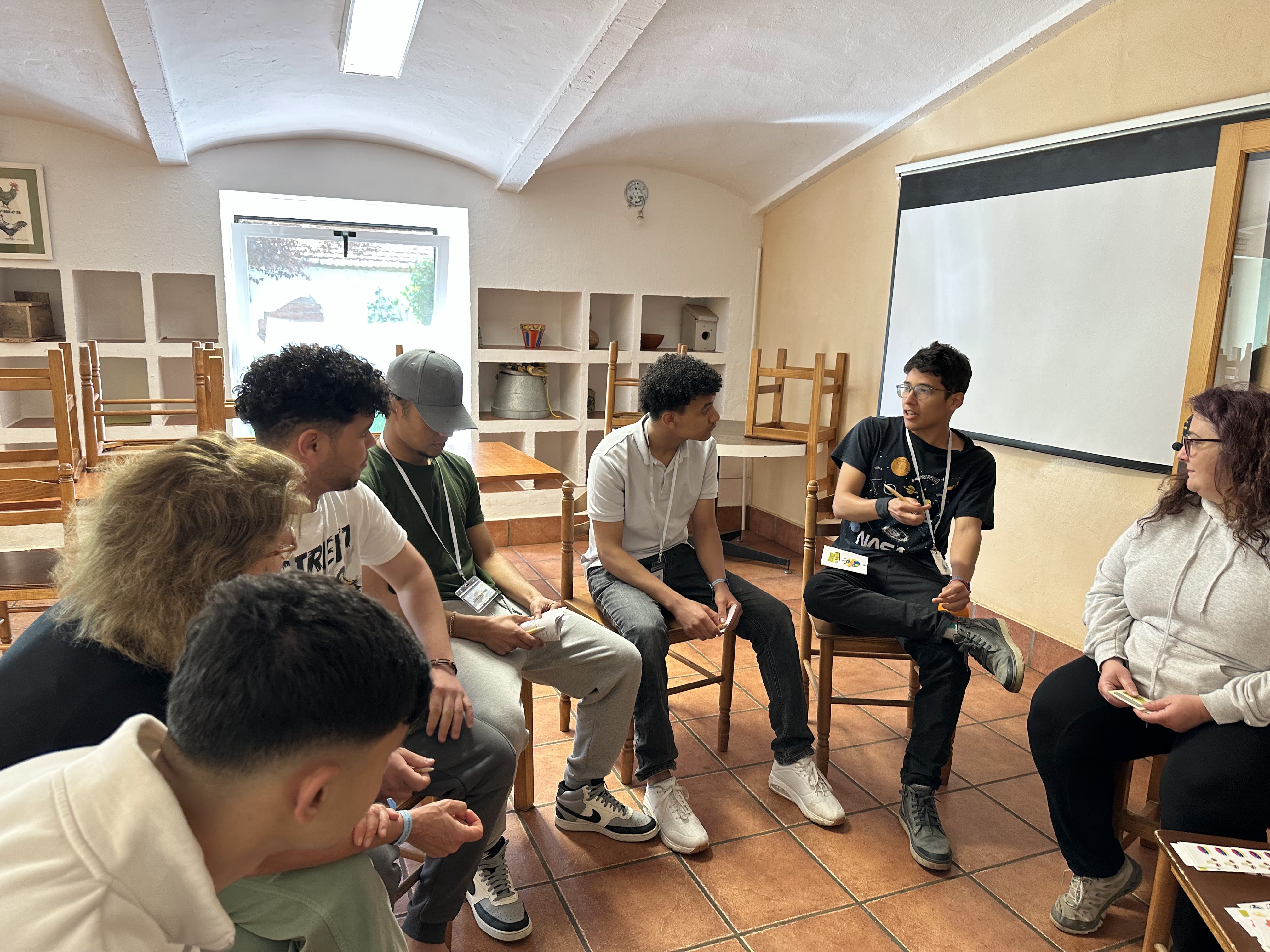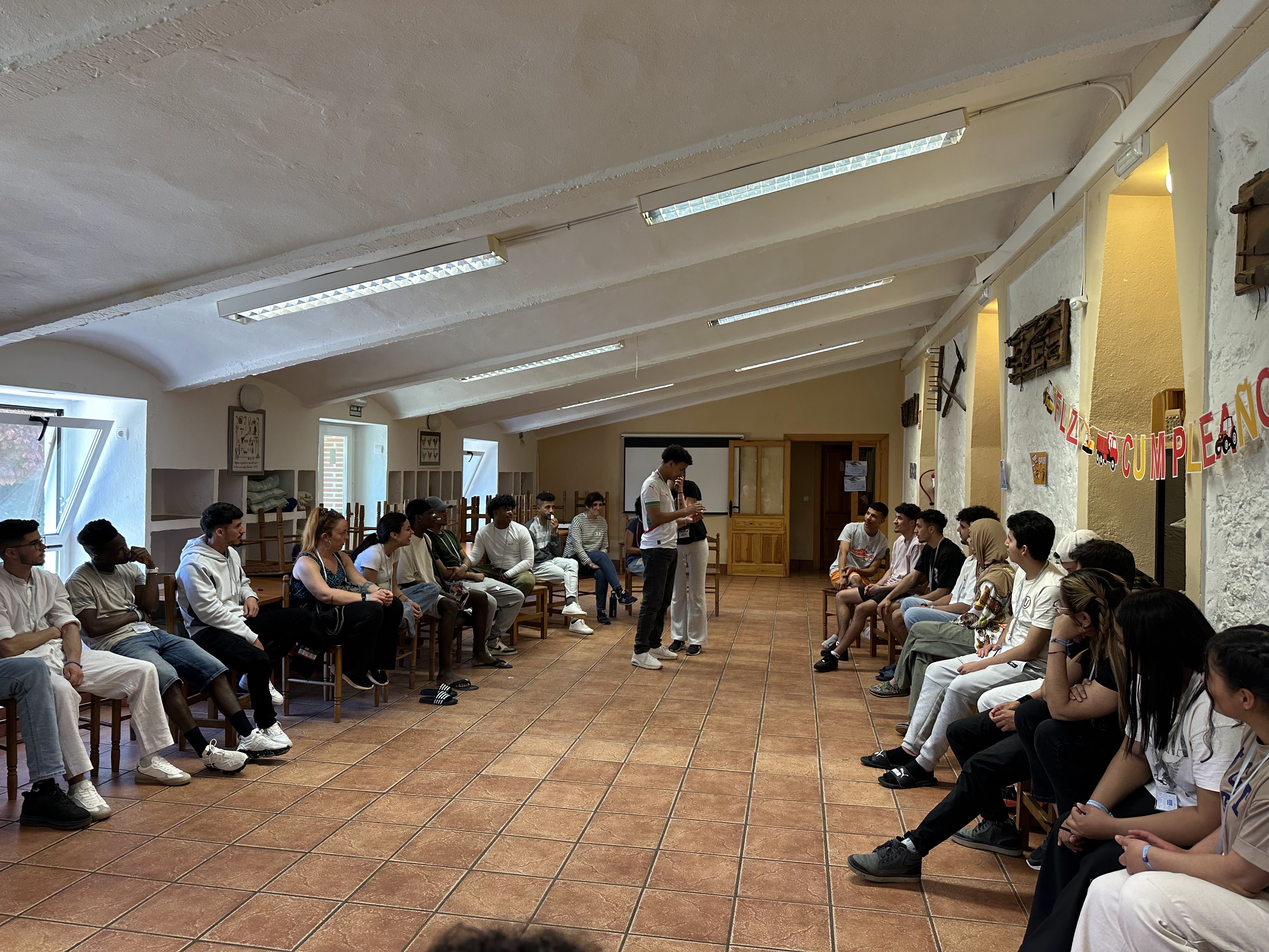 El domingo la aventura nos llevó al centro de Valladolid. Conocimos el Espacio Joven del Ayuntamiento, un lugar de encuentro para la juventud de la ciudad. A pocos pasos de allí, se encuentran las instalaciones de Red Íncola, que también visitamos. Allí, Elena, Carmen y María nos contaron sobre los programas de la fundación e hicimos un recorrido por su Espacio Interreligioso. A continuación, realizamos la dinámica de cierre donde cada joven recibió algunas fotos para guardar de recuerdo y compartió una palabra que resumiera la experiencia. Surgieron palabras como “emocionante”, “aprendizaje”, “gratitud”... y también reflexiones profundas sobre lo que significa convivir y la posibilidad de ser uno mismo de manera auténtica, sin prejuicios, y cómo, aunque tenemos culturas diferentes, también siempre tenemos algo en común.