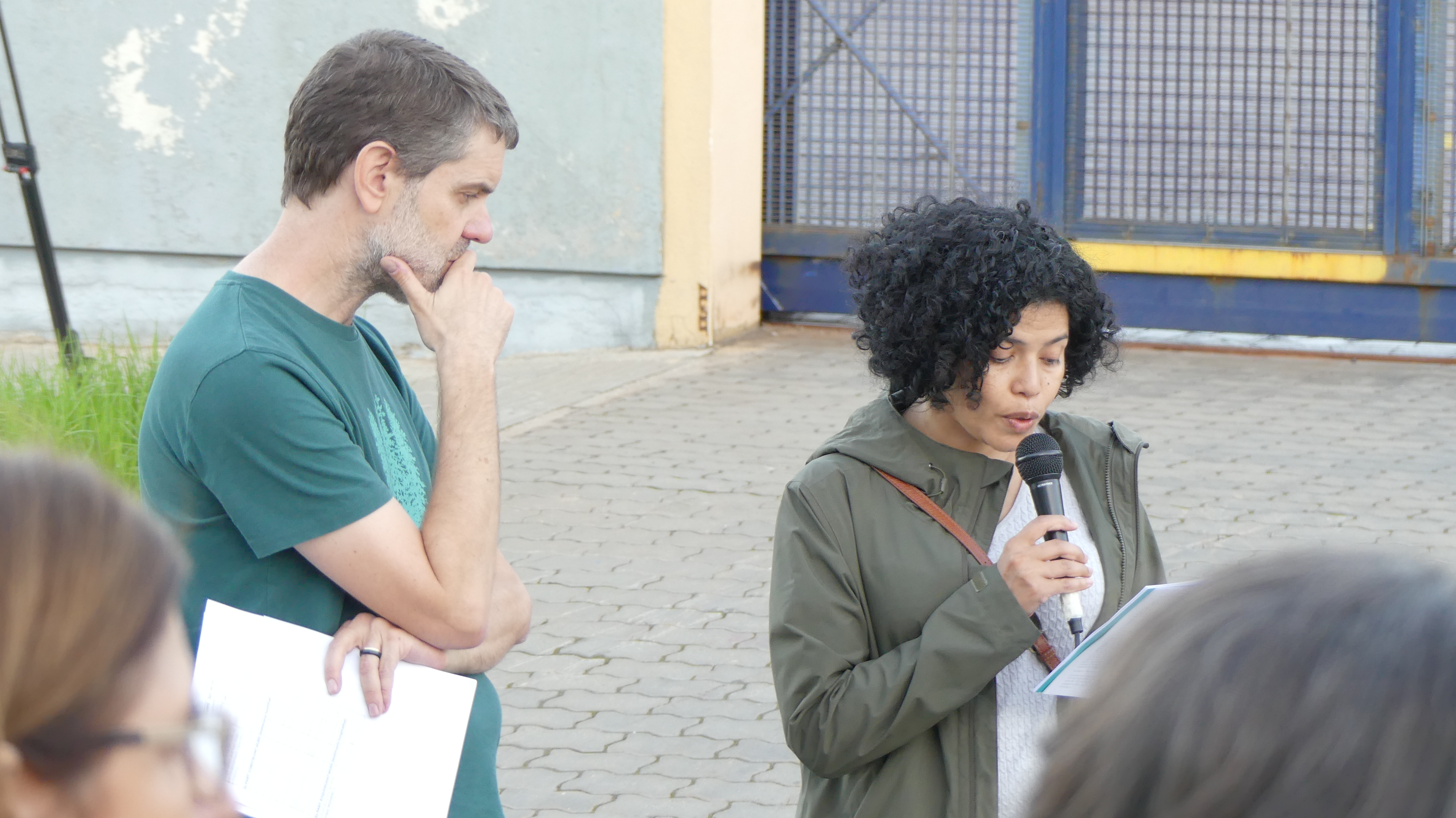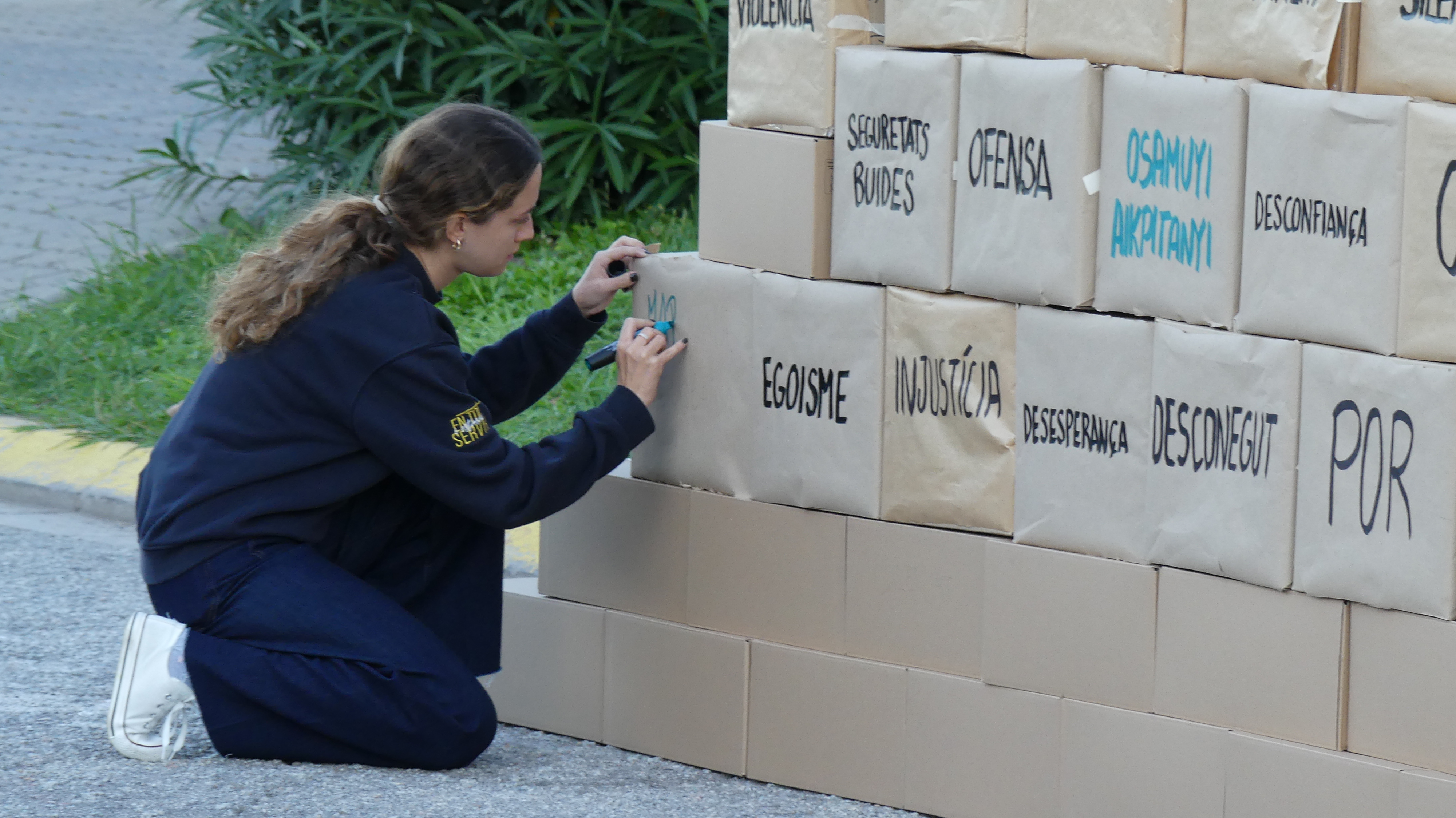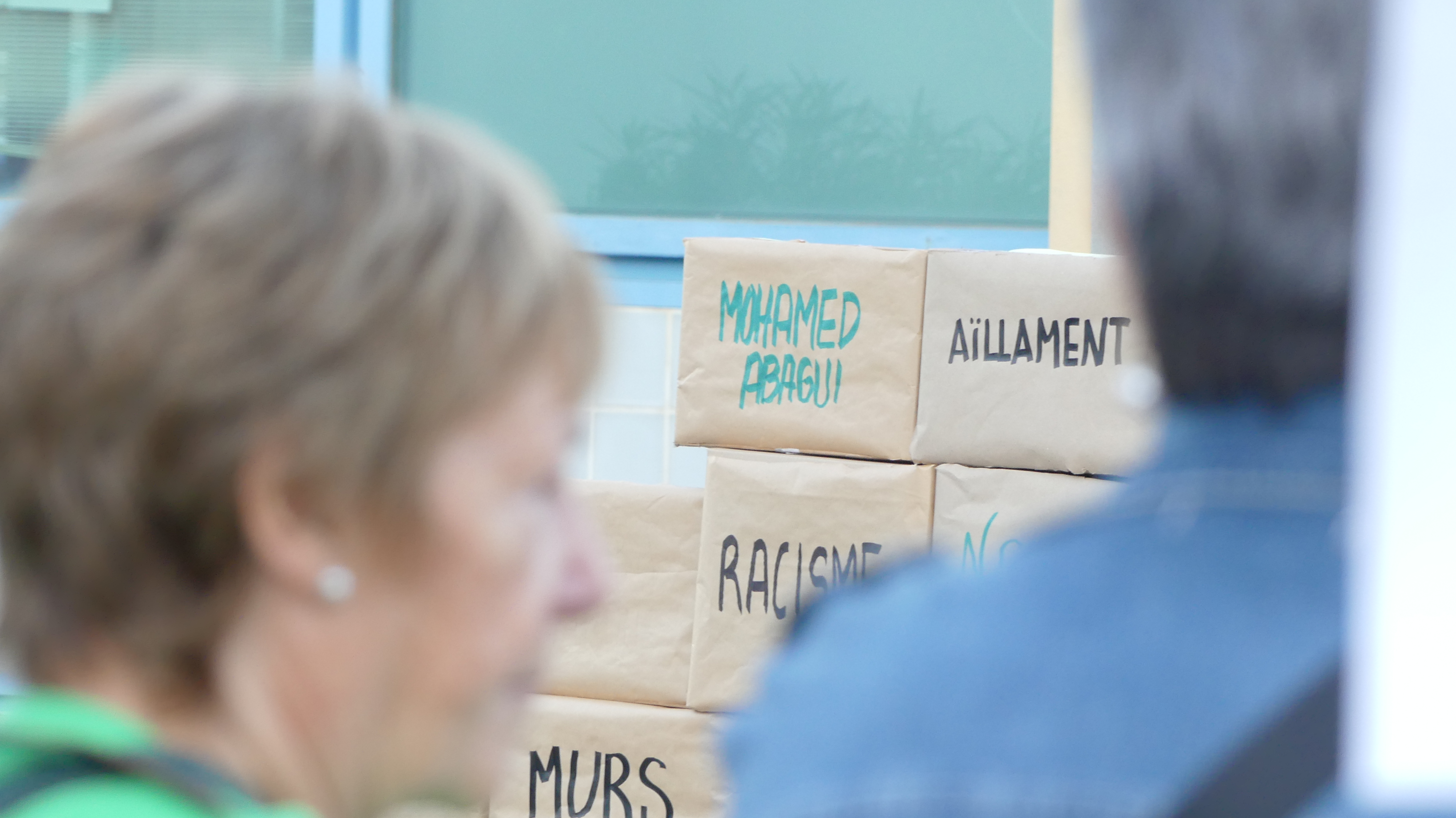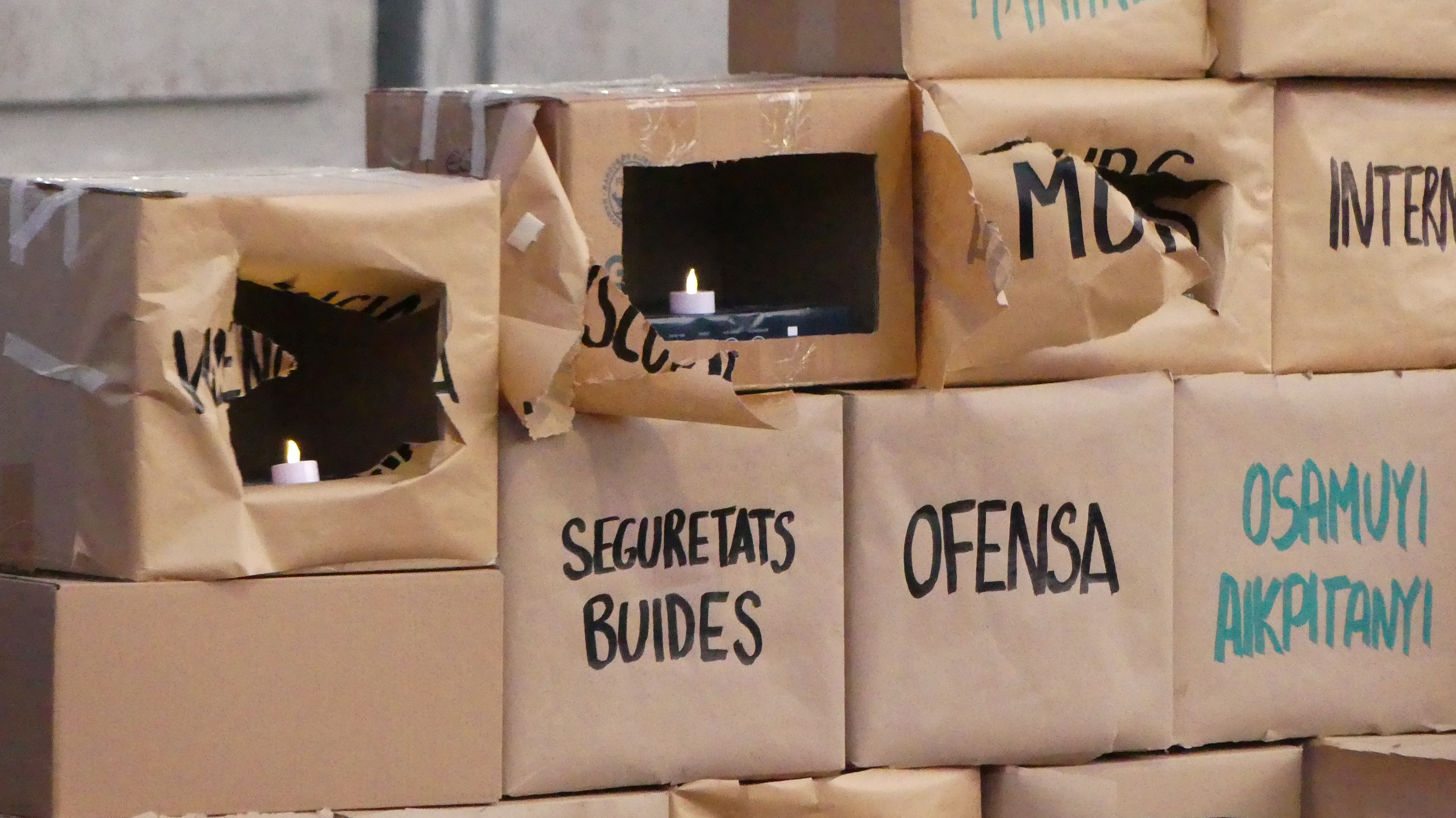 Una performance artística, liderada por un grupo de jóvenes, daba el pistoletazo de salida al acto. Este grupo de jóvenes invitaba a tomar conciencia de los muros que irrumpen silenciosamente en nuestras vidas y muchas veces tenemos demasiado integrado. Muros, que después invitaron a transformar, resquebrajarse y poner luz. Recordaban que tenemos cerca fronteras invisibles que nos impiden ver más allá de nuestras vidas. A continuación se nombraron los nombres de aquellas personas que han muerto por el internamiento y la expulsión en España, una primera forma de romper el silencio, poniendo voz y nombre.