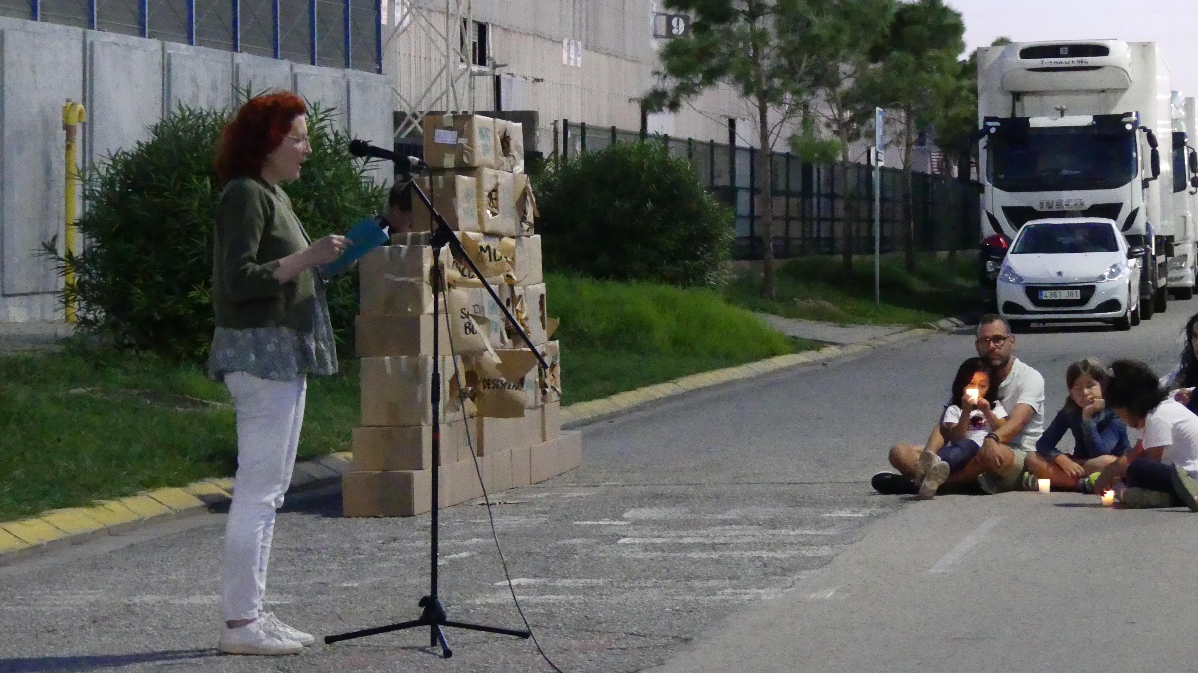 La primera parte del acto consistió en la lectura de los testimonios recogidos por los voluntarios y voluntarias de Migra Studium que visitan el Centro de Internamiento. Los casos de Oussama, Anthony, Alma y Endri, eran solo una muestra de la realidad de sufrimiento que se vive detrás de los muros de un CIE. Testimonios, escuchados en silencio, a las puertas del CIE, hacían resonar el dolor, la dignidad y la determinación. “A mí me detuvieron por primera vez en Navidad del año 2008, estuve cuarenta y siete días encerrada, pero no pueden volverme porque soy apátrida. Bosnia no me reconoce, nunca he estado allí. Ahora me han vuelto a encerrar, pero saben que no pueden expulsarme. ¿Qué sentido tiene todo ese sufrimiento?”, decía Alma, de 40 años. “Un día la policía me pidió los papeles en el metro. El mundo se me cayó encima. Me llevaron aquí, al CIE. Yo no sabía dónde estaba. Agradezco mucho las visitas de Migra Studium, gracias a vosotros he podido recuperar el contacto con mis tías”, decía Endri, puesto en libertad la última semana antes de cumplir los 60 días máximos de internamiento.